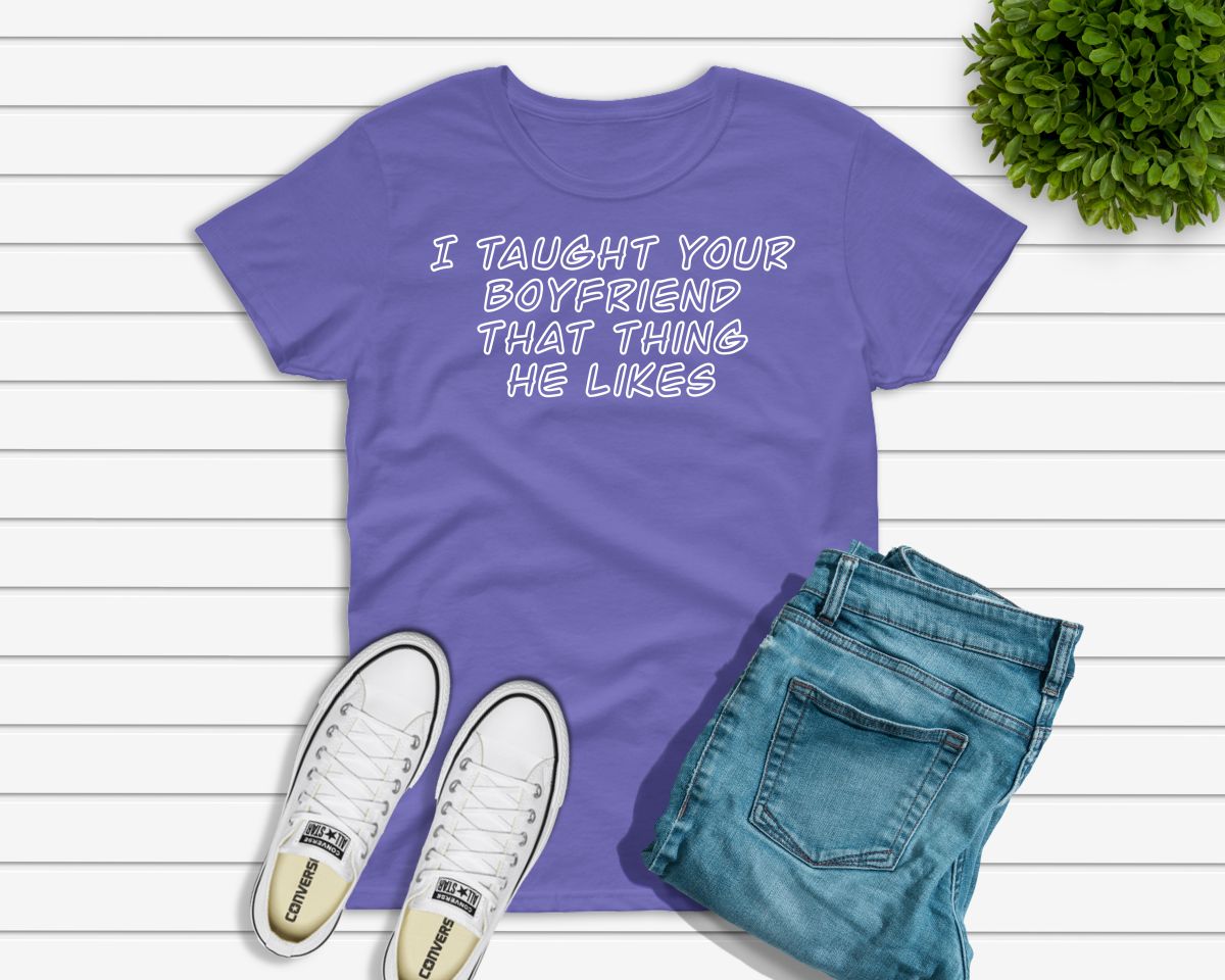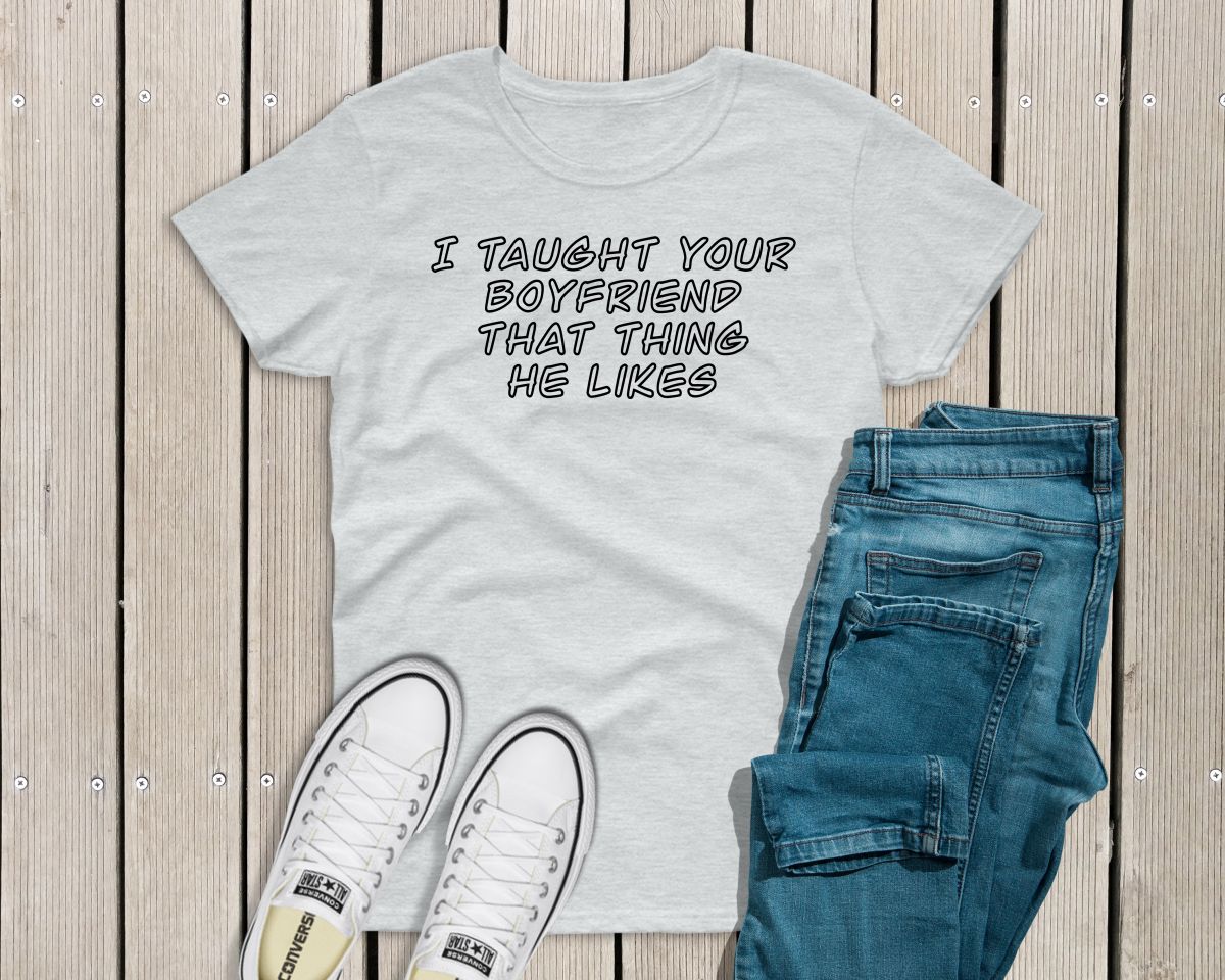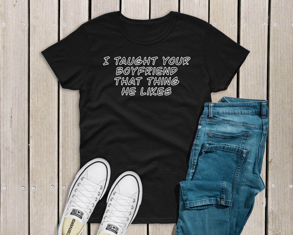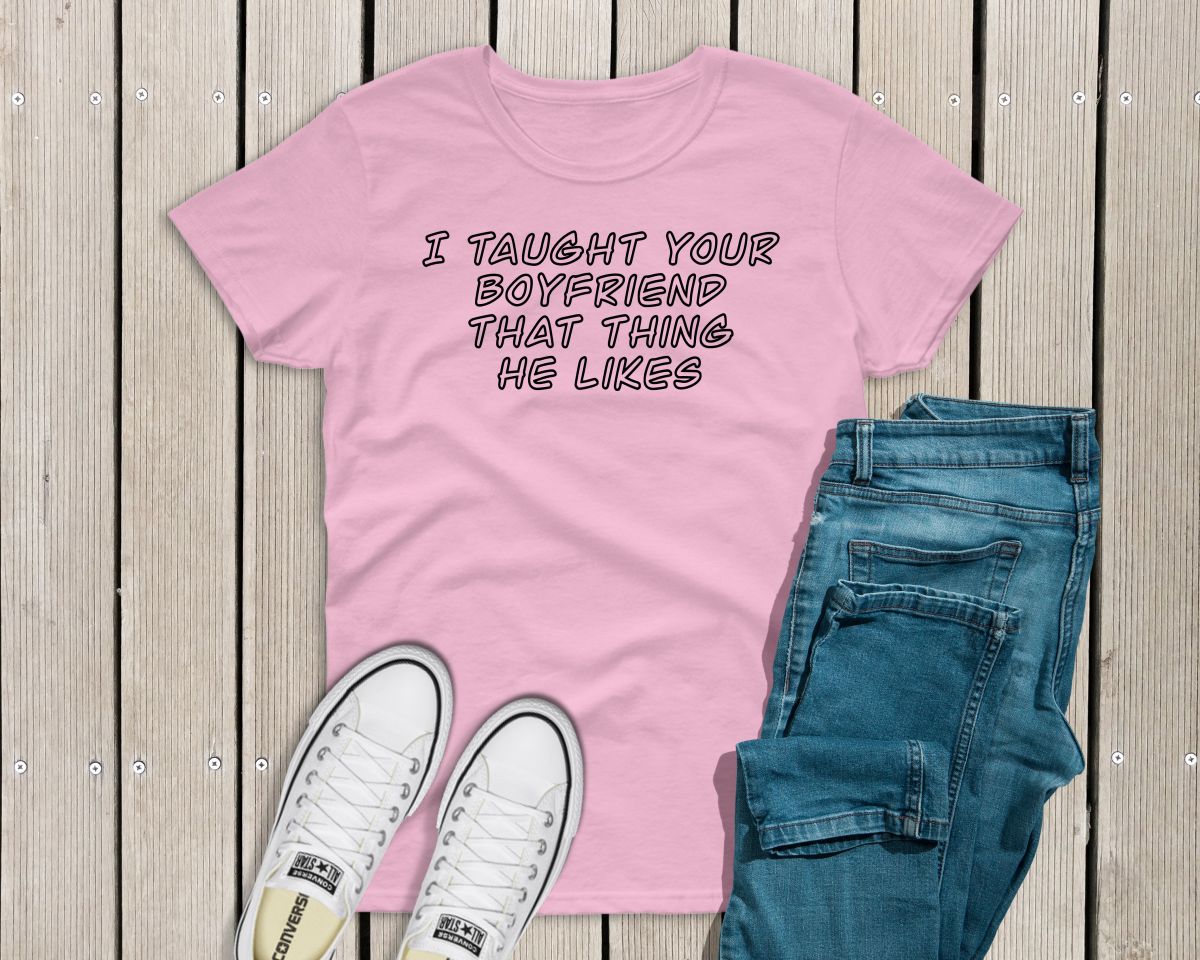 Ladies funny sarcastic T-shirt “I taught your boyfriend that thing he likes”