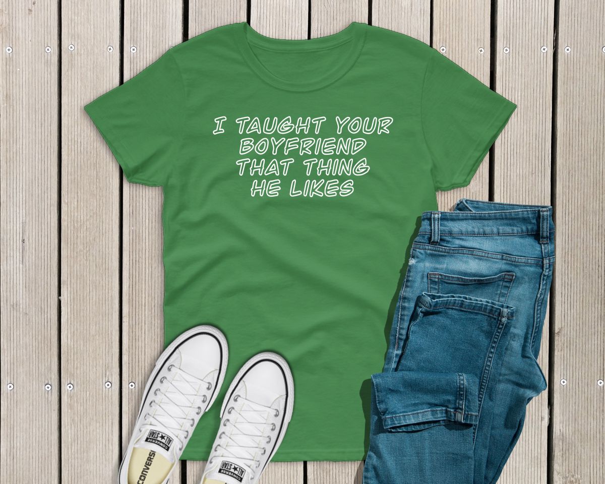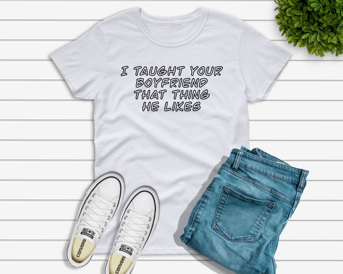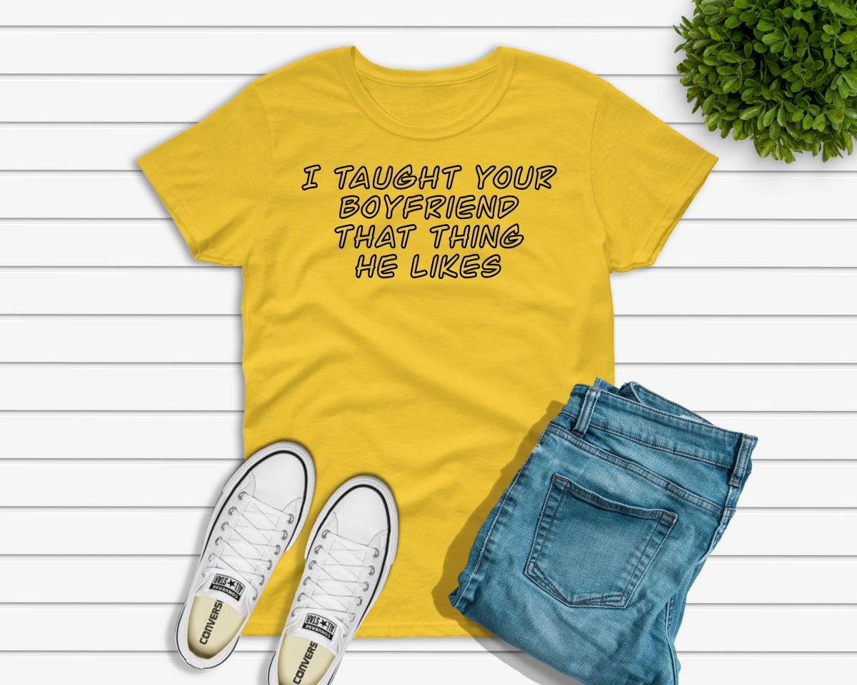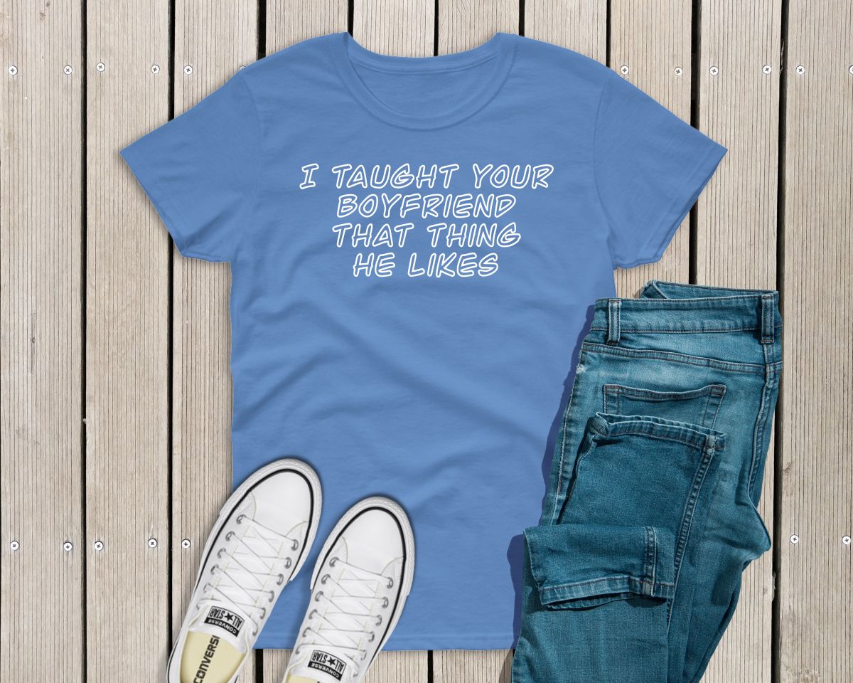 Ladies funny sarcastic T-shirt “I taught your boyfriend that thing he likes”