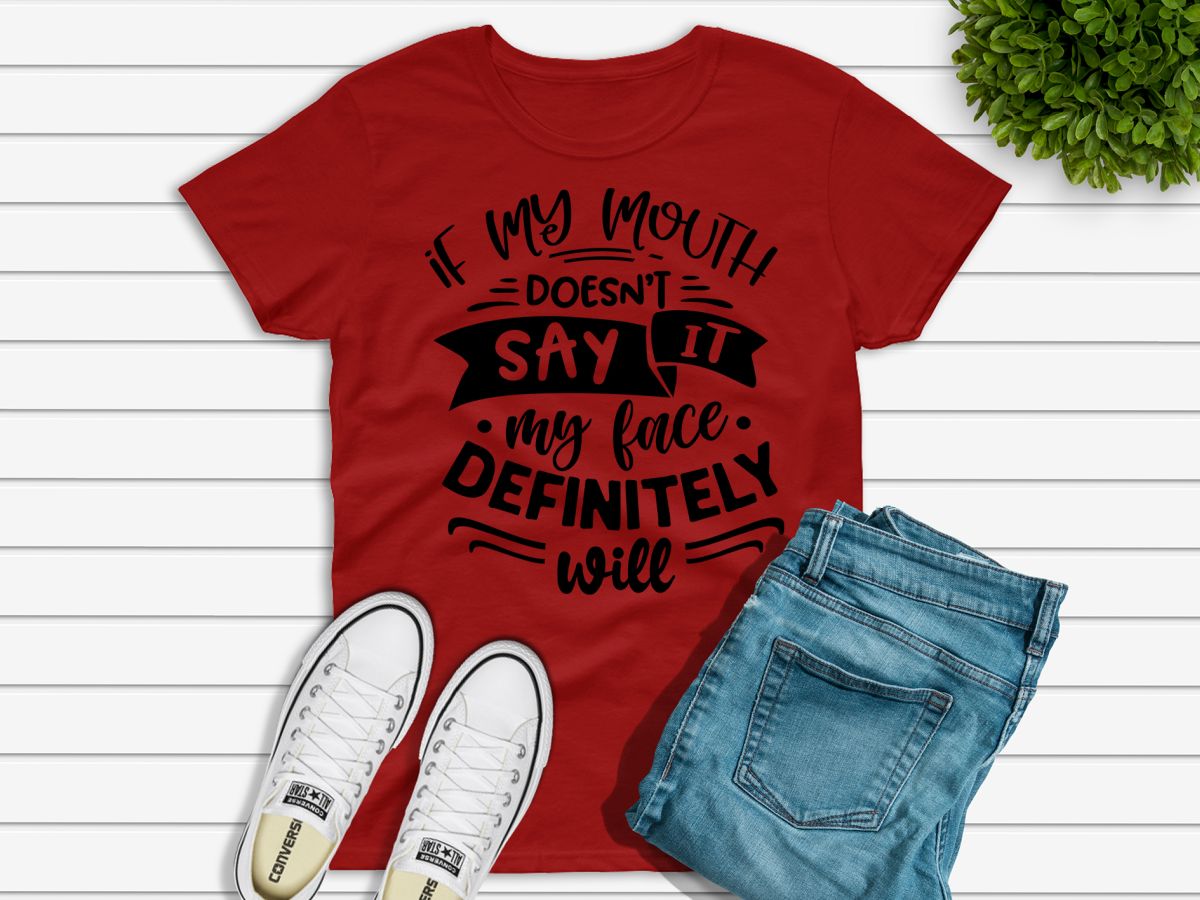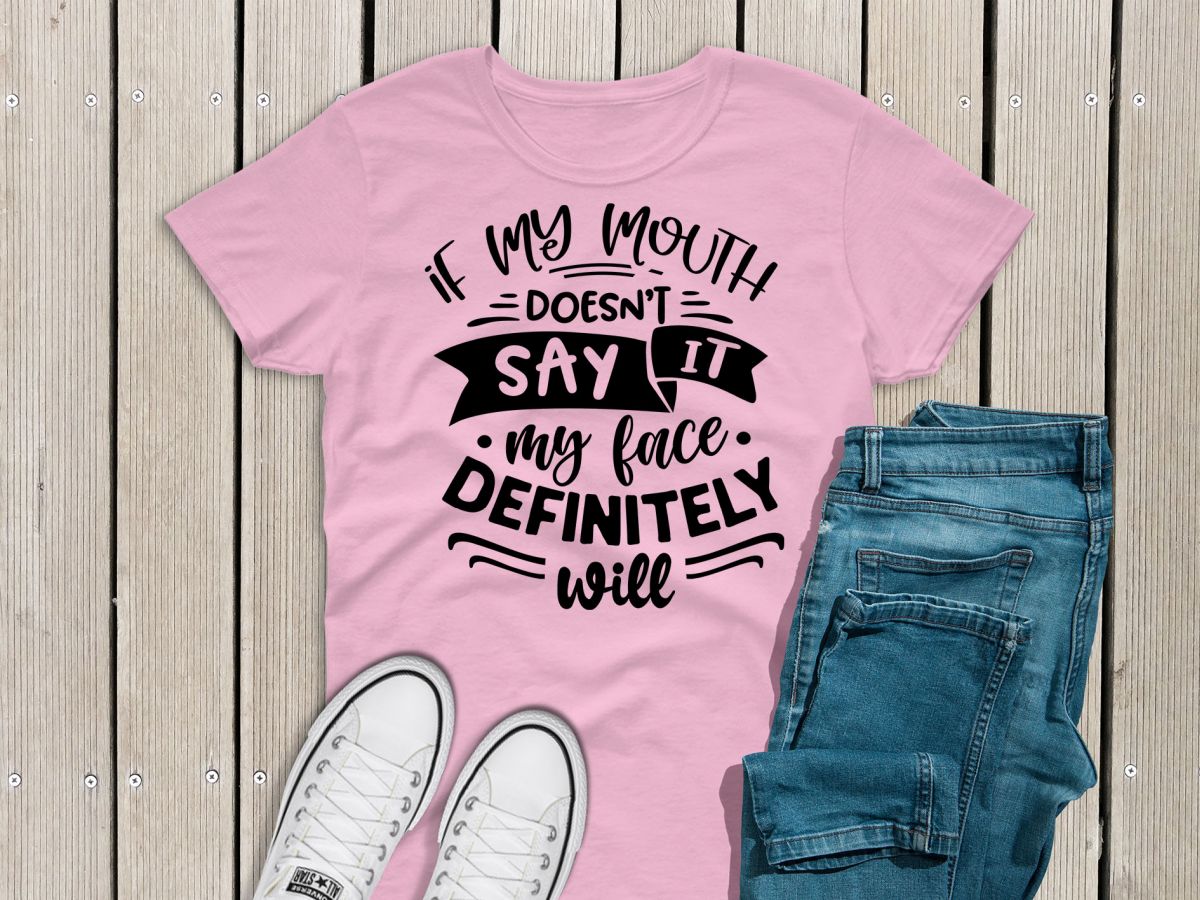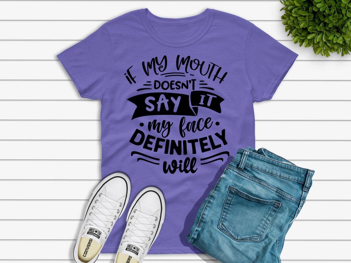 Ladies funny sarcastic T-shirt “If my mouth doesn’t say it, my face definitely will”