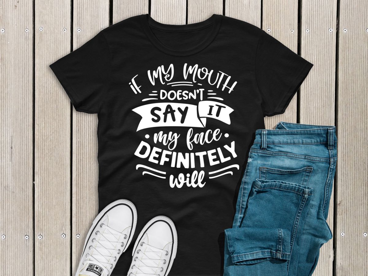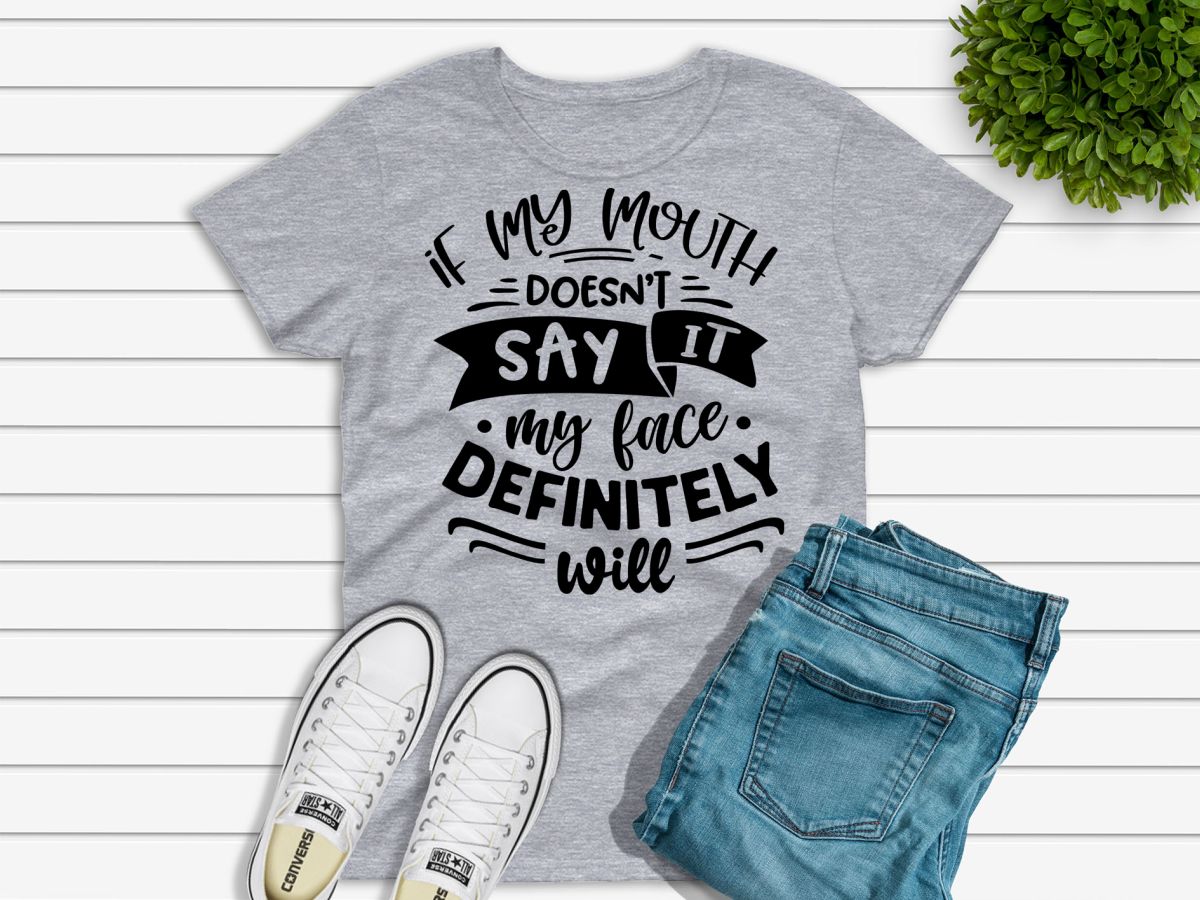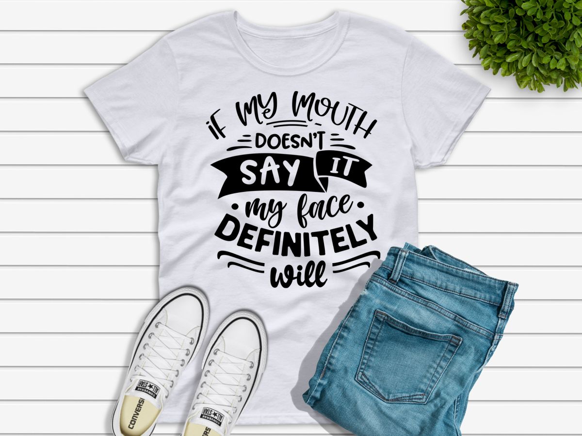 Ladies funny sarcastic T-shirt “If my mouth doesn’t say it, my face definitely will”