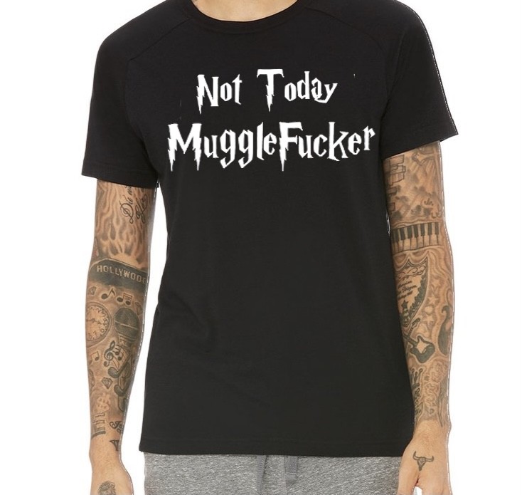 T-shirt with “Not Today MuggleFucker” decal